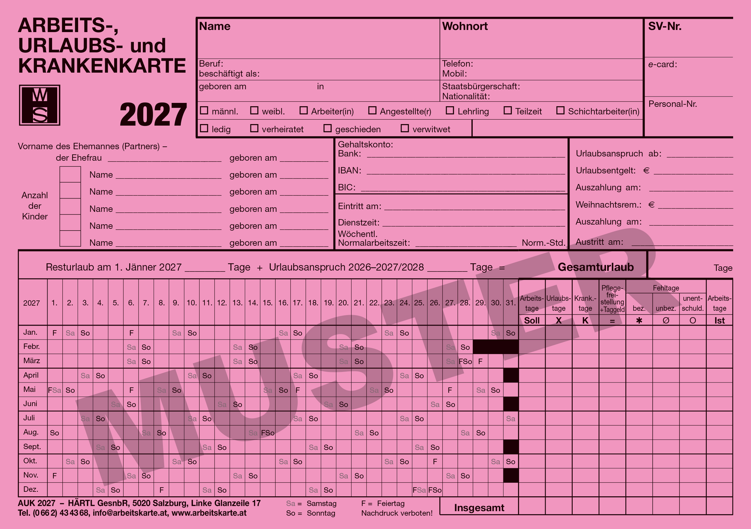 Arbeits-, Urlaubs- und Krankenkarte